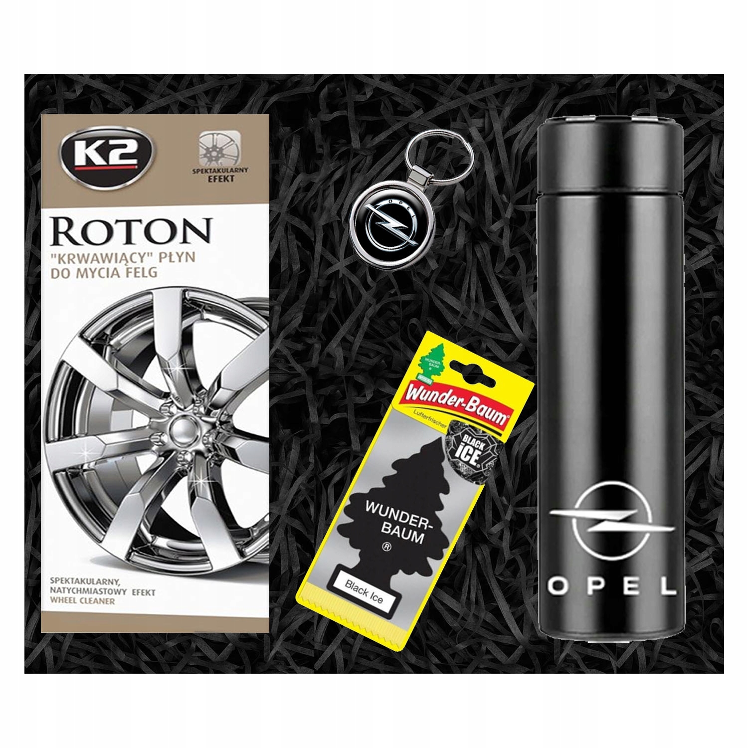 НАБОР ТЕРМОКРУЖКИ БРЕЛОК OPEL + АРОМАТ И ЖИДКОСТЬ ДЛЯ ДИСКОВ КРАСИВАЯ КОРОБКА