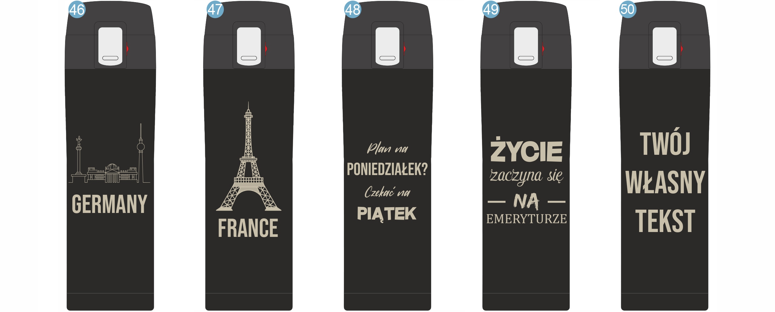Наши кружки и термосы гравированы с помощью фирменного лазера на вращающейся насадке, поэтому мы можем гравировать практически всю площадь вокруг кружки.