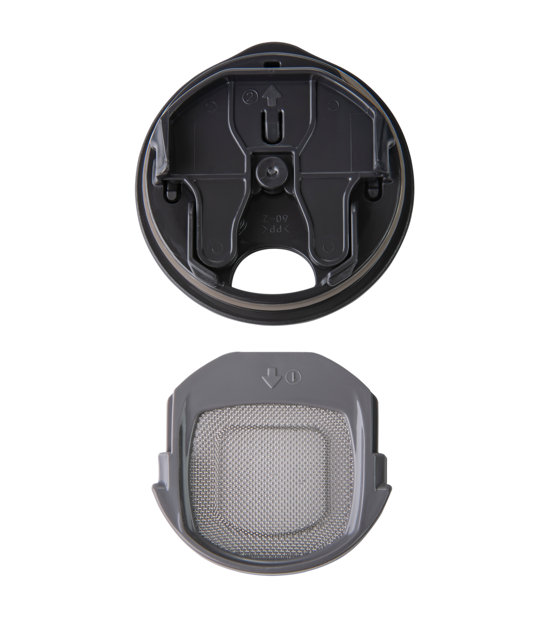 Полностью съемная крышка обеспечивает легкую и тщательную очистку сетчатого фильтра, мундштука, уплотнений и других частей крышки.