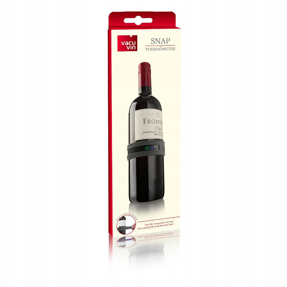 Самоблокирующийся термометр Snap Vacu Vin похож на браслет, который можно прикрепить к руке. Просто прикрепите термометр к бутылке, и на дисплее появится температура напитка.