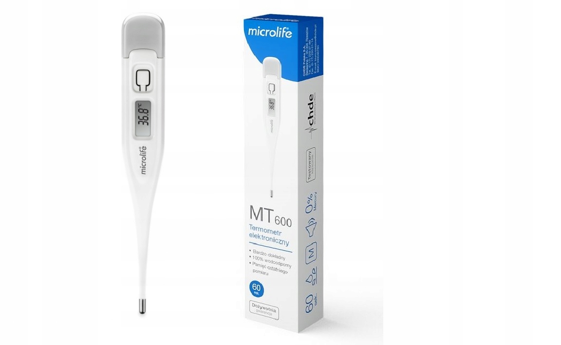 Электронный термометр Microlife MT 600 позволяет измерять температуру в 3-х местах: во рту, под руку или ректально. Водонепроницаемый, измерение за 60 секунд