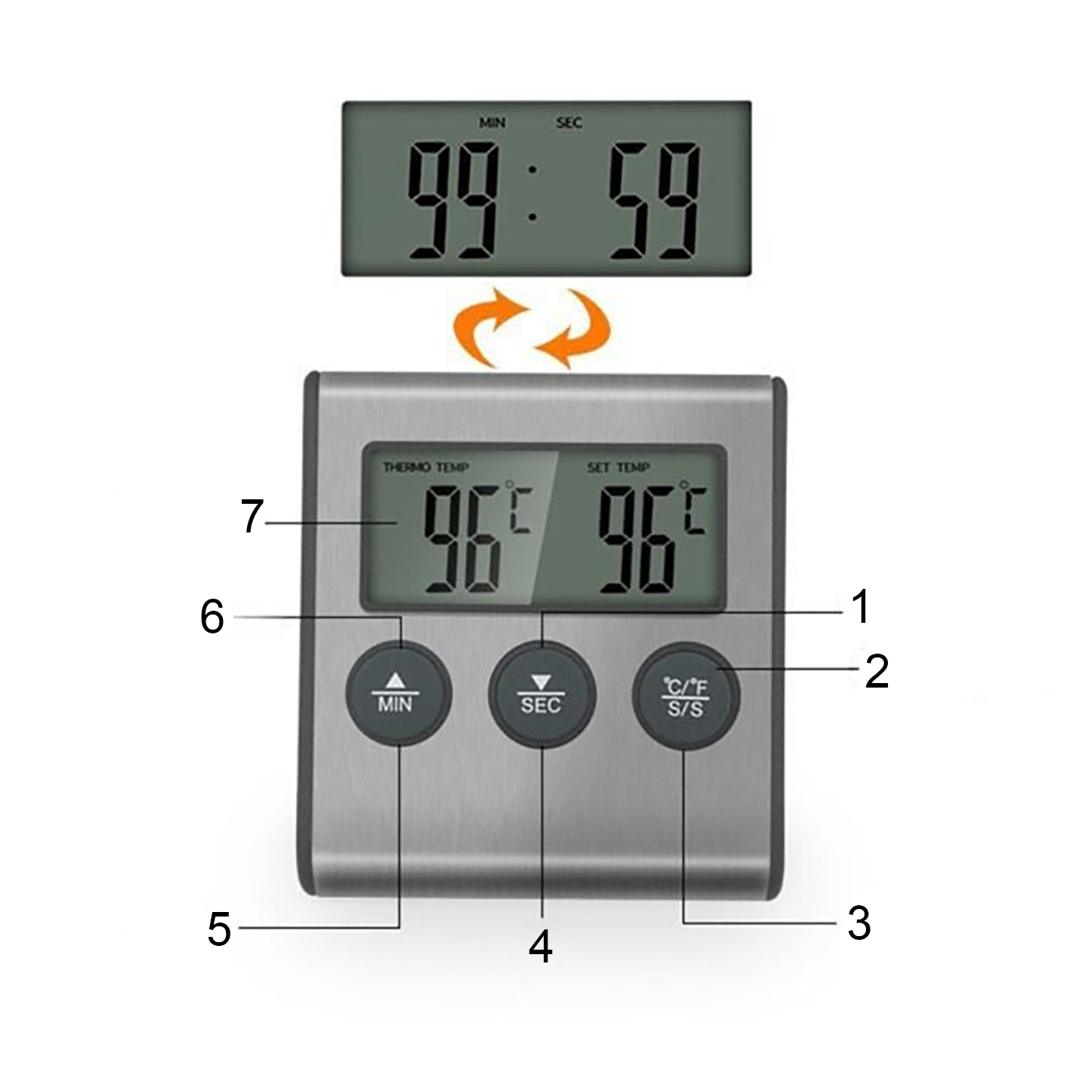 Наше устройство – это не только термометр, это еще и удобный и простой в использовании таймер, который подойдет во многих ситуациях. Вы можете легко установить на нем ожидаемое время, и он сообщит вам, когда оно будет достигнуто, звуковым сигналом. Готовьте идеальные яйца всмятку, макароны «аль денте» и пеките пышные бисквиты.