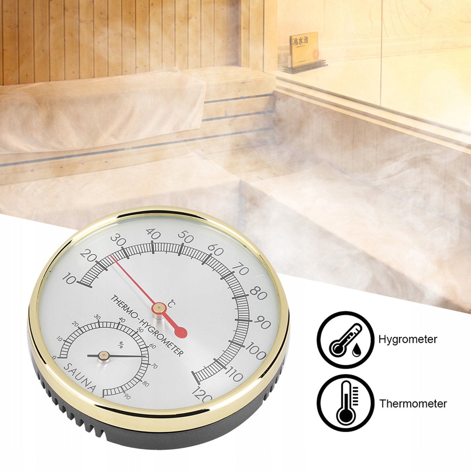 Этот гигрометр с термометром 2-1-отличный способ отслеживать влагу и температуру в сауне. Сделано из ручного металла с тонким и прозрачным щитом, легко считывать с помощью шкалы /P>