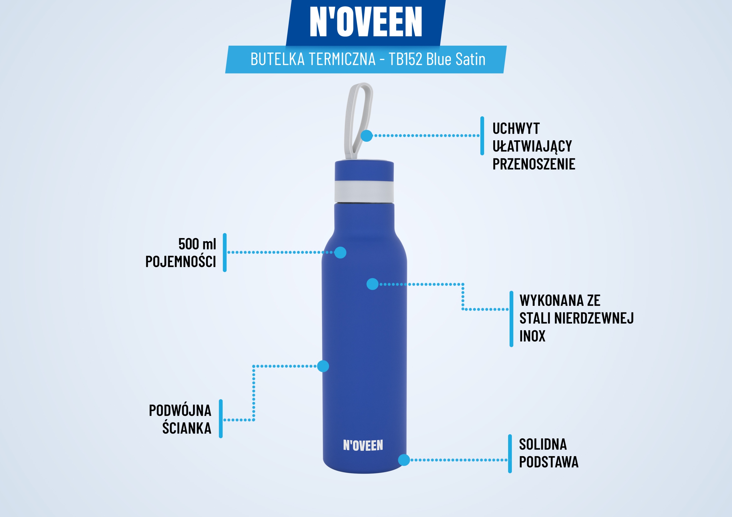 Термобутылка Noveen создана для удобного и эстетичного хранения любимых напитков. Поддерживая высокую и низкую температуру напитков, бутылка полезна круглый год, независимо от погоды. Он изготовлен из материалов, не содержащих BPA. Использование высококачественной кислотостойкой стали означает, что бутылка не сохраняет и не передает запахи, поэтому ее можно использовать в течение длительного времени. Изделие прочное и устойчивое к повреждениям. Легкая очистка позволяет поддерживать надлежащую гигиену. Термобутылка может стать первым или следующим шагом на пути к защите окружающей среды за счет сокращения производства одноразовых отходов, например чашек для кофе или чая.