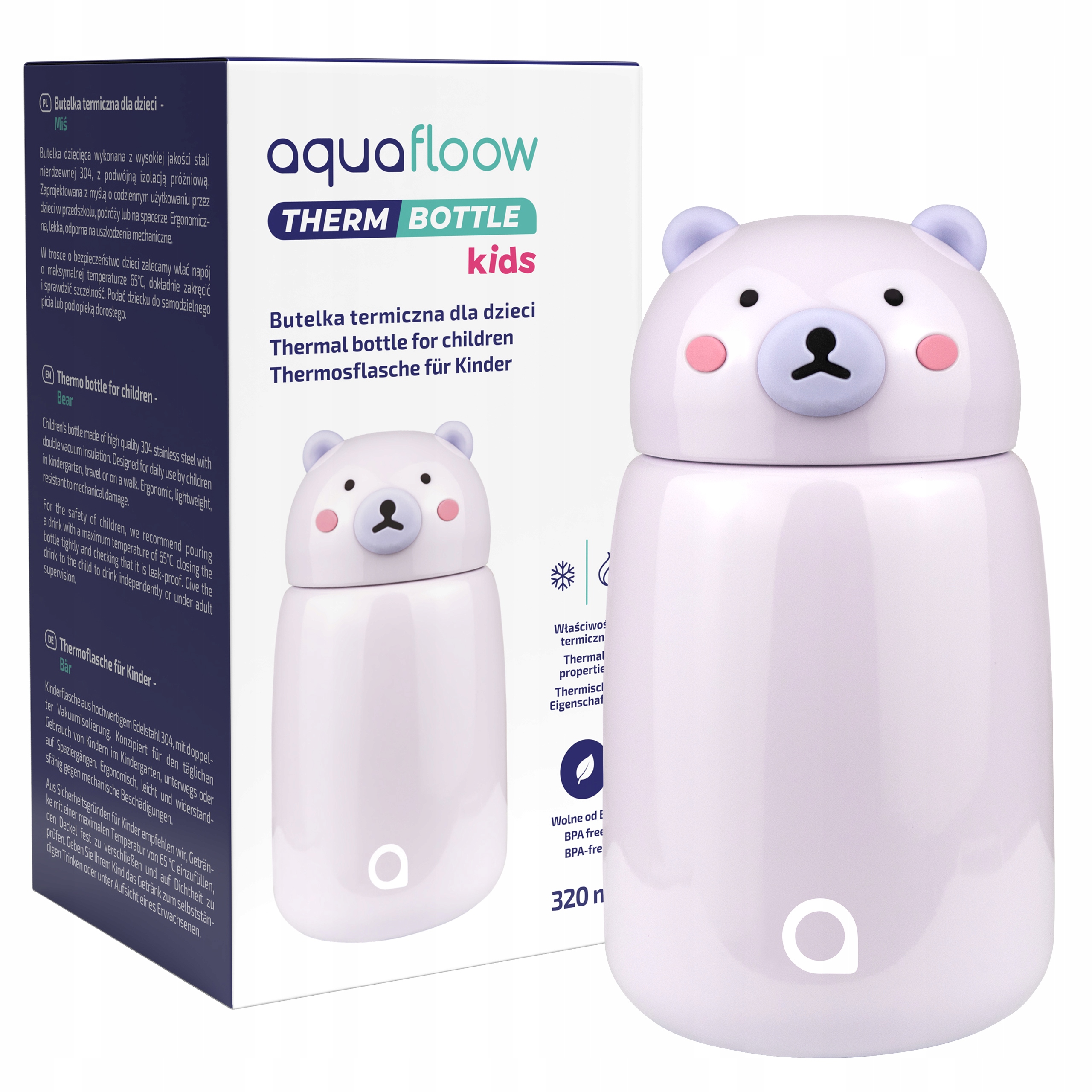 Детская термобутылка AquaFloow ThermBottle 320 мл - мотив плюшевого мишки