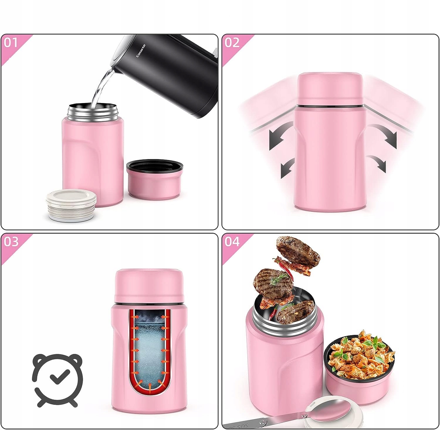 Термоконтейнер для пищевых продуктов изготовлен из безопасной для пищевых продуктов, нетоксичной нержавеющей стали, не содержащей BPA, поэтому вы можете использовать его с уверенностью. Высококачественный предохранительный клапан для легкого открытия.