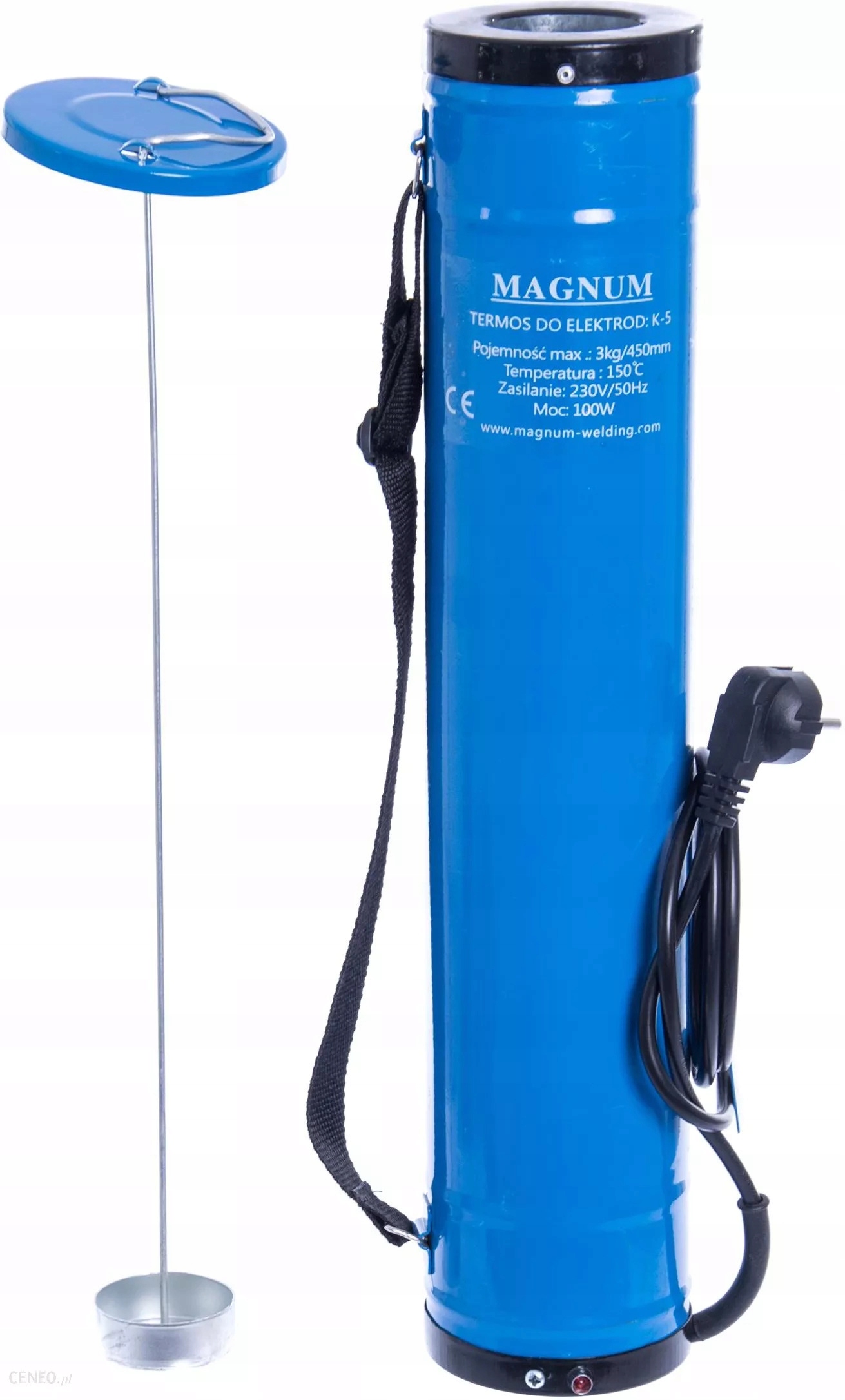 Термос К-5 фирмы MAGNUM предназначен для хранения высушенных покрытых электродов на сварочных постах. . Это касается как свеженагретых электродов, так и электродов, распакованных из изолированных вакуумных упаковок. Термос, в отличие от сушилки, не имеет возможности регулирования температуры, он сохраняет ее значение на уровне ~150 ºC.
