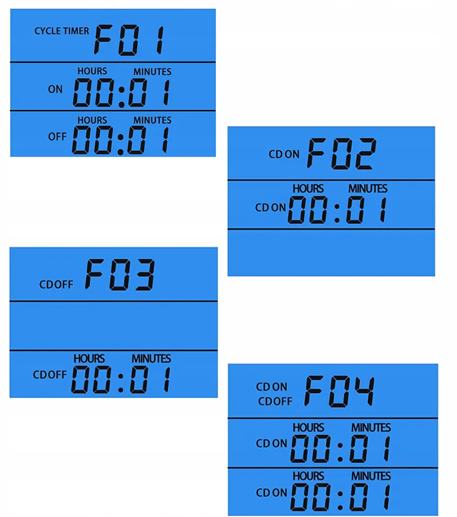 - F02 режим обратного отсчета, теперь Ti.s выключен, задержка (время начала) включена