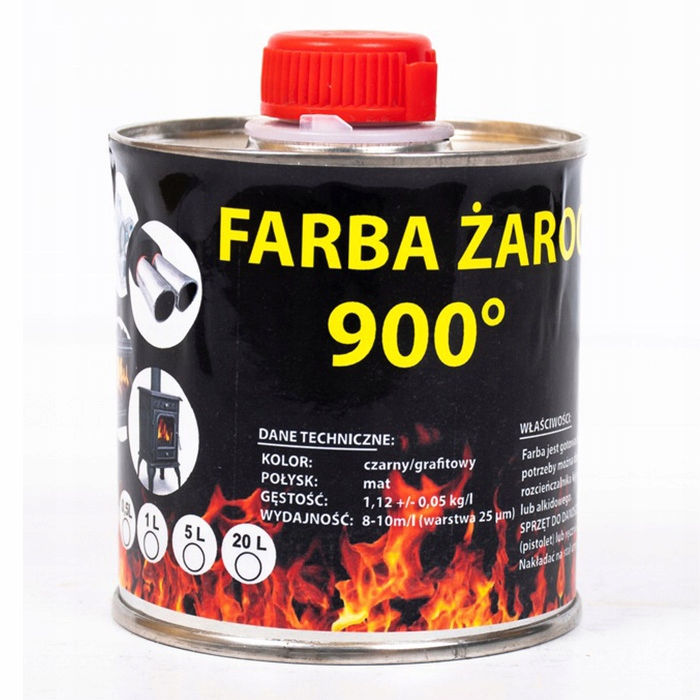 - Применение: Термостойкая краска для защиты поверхностей, подвергающихся воздействию температур до 900°C, например: котлы. , каминные топки, выхлопные системы автомобилей и т. д. Может использоваться как средство для предотвращения коррозии материалов.