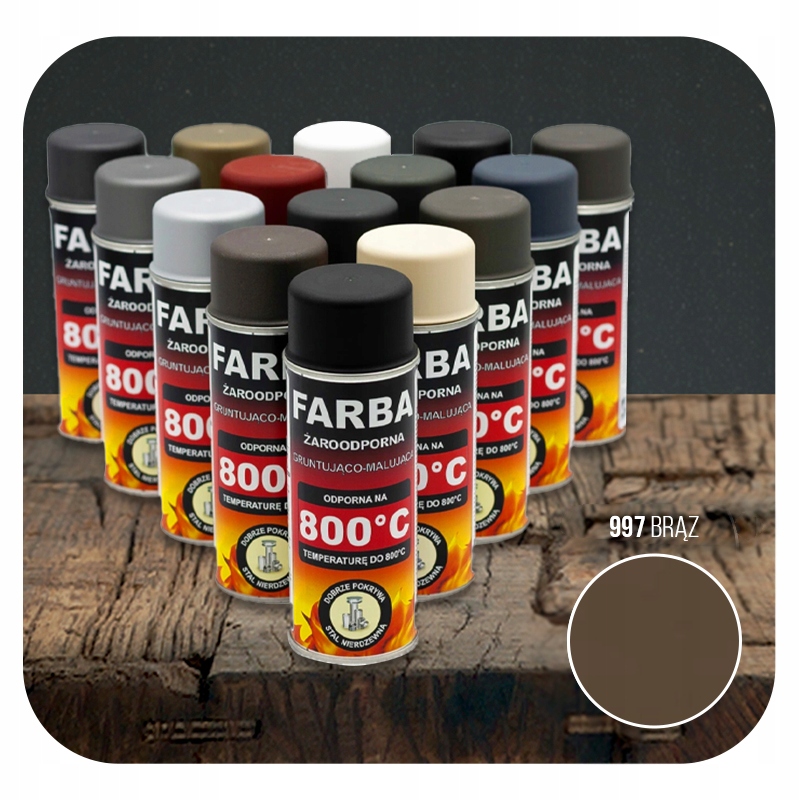 Чрезвычайно эффективная, термостойкая(максимальная рабочая температура 800°С!), быстродействующая высыхание( 20-30 мин) краска. Обеспечивает идеальное покрытие различных поверхностей, в том числе нержавеющей стали. Форма распыления обеспечивает легкое и точное нанесение. Краска идеально подходит для для покраски каминов, дымоходов, печей, грилей и глушителей автомобилей.