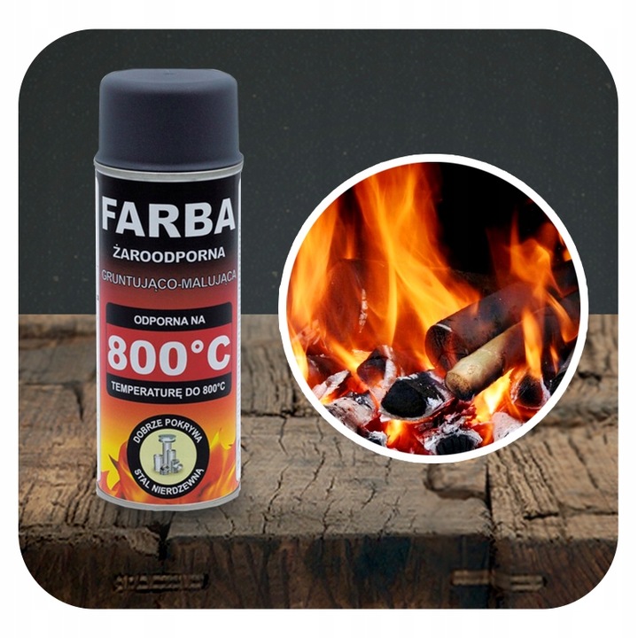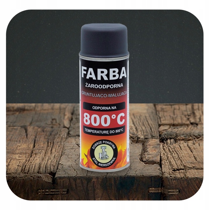Чрезвычайно эффективная, термостойкая (максимальная рабочая температура 800°C!), быстродействующая высыхание( 20-30 мин)краски. Обеспечивает идеальное покрытие различных поверхностей, в том численержавеющей стали. Форма распыления обеспечивает легкое и точное нанесение. Краска отлично себя чувствует. b>для покраски каминов, дымоходов, печей, грилей и глушителей автомобилей.