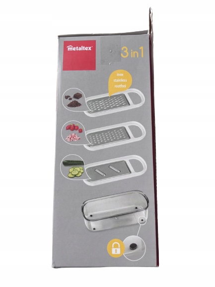 Просматривая «ТЕРТКА КУХОННА З КОНТЕЙНЕРОМ METALTEX 3в1 58E-198», вы можете быть уверены, что данный товар из каталога «Кухонное оборудование» будет доставлен из Польши и проверен на целостность. В цене товара, указанной на сайте, учтена доставка из Польши. Внимание!!! Товары для Евросоюза, согласно законодательству стран Евросоюза, могут отличаться упаковкой или наполнением.