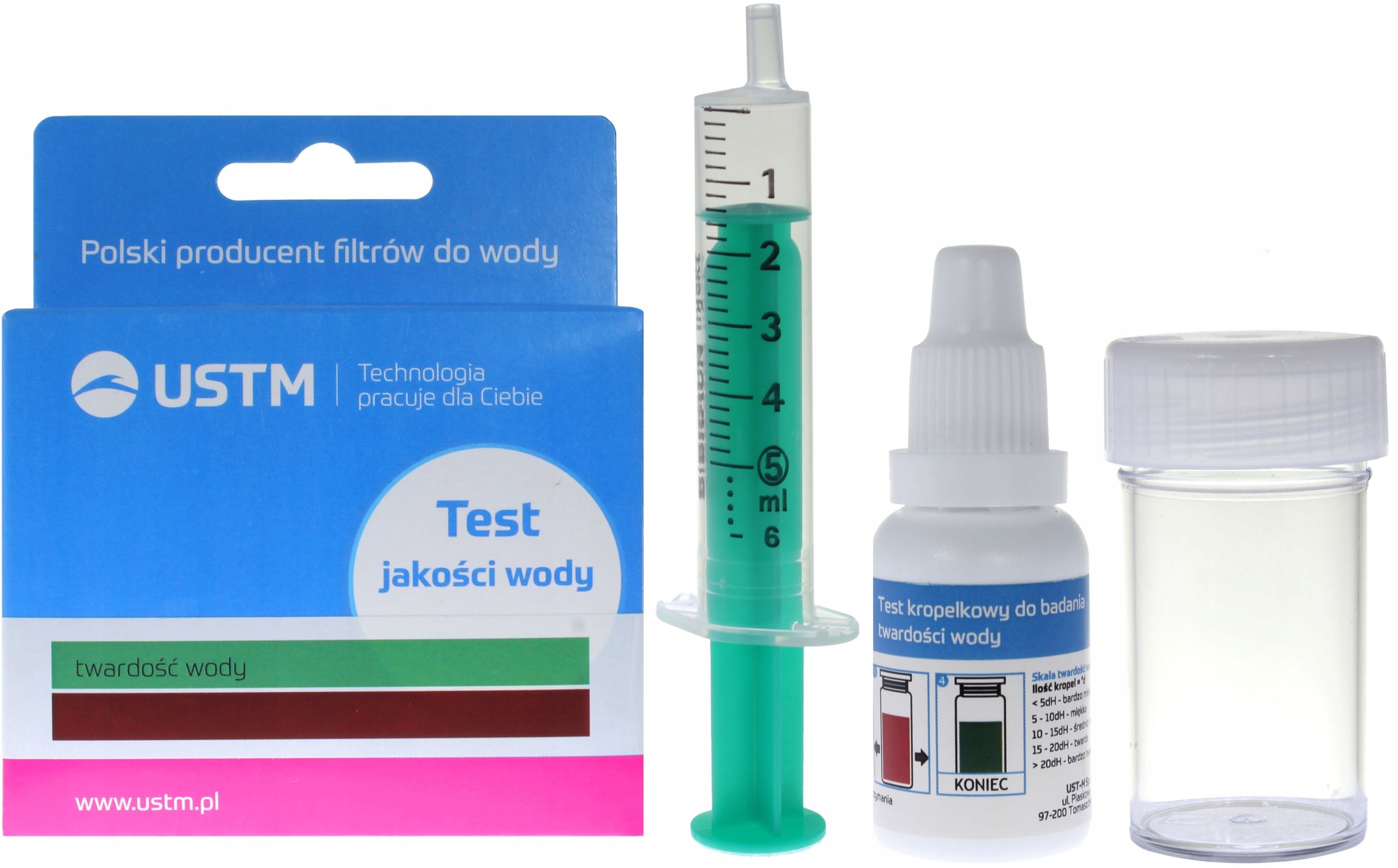 Просто воспользуйтесь тестом на жесткость воды TEST-T от USTM. Благодаря ему вы сможете быстро, дешево и с высокой точностью проверить жесткость воды. Внутри упаковки ТЕСТ-у-Т находится резервуар со специальной жидкостью, шприц и емкость с водой. Для проведения теста отмерьте шприцом 5 мл воды и добавьте жидкость.