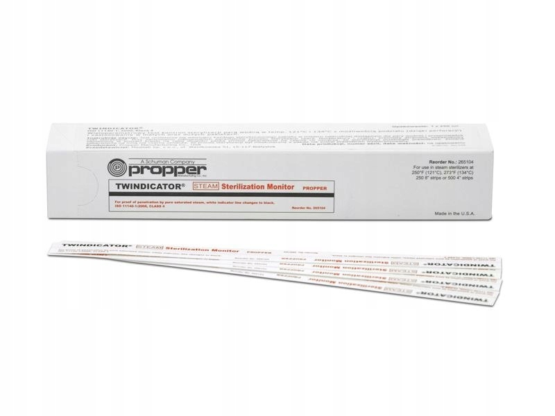 ПРЕИМУЩЕСТВА: - Экономичность – в зависимости от размера стерилизуемых упаковок можно определиться с длиной тест-полоски (возможно разделить полоску пополам). - Универсальность - Twindicator® показывает результат стерилизации в двух температурных диапазонах (121°C и 134°C). - Безопасность и комплексный контроль благодаря адаптации теста для одновременного контроля трех параметров стерилизации (время, температура, проникновение водяного пара) - Надежное считывание – цвет индикаторных чернил меняется со светло-бежевого на черный. - Цвет индикаторных чернил постоянный (не тускнеет и не размывается), поэтому документация процесса стерилизации остается доступной для просмотра в течение длительного времени. - Соответствие европейским и американским стандартам (постоянный надзор FDA в США – гарантия лучшего качества)