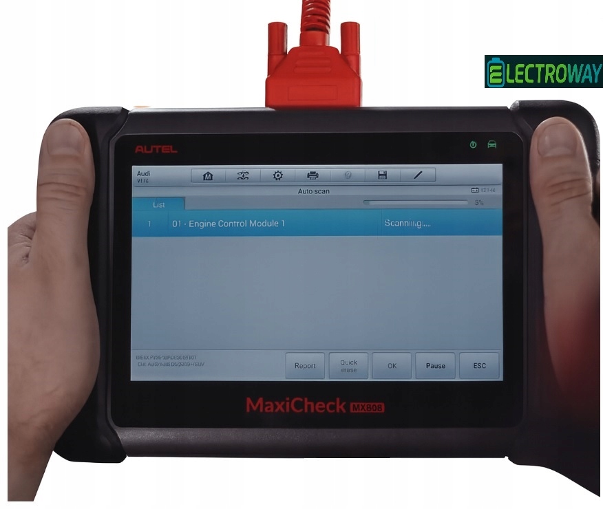 Тестер Autel MaxiCheck MX808S обеспечивает полный доступ ко всем электронным модулям автомобиля через проводное соединение. Благодаря полной функциональности в области считывания ошибок, анализа данных в реальном времени и информации от ЭБУ устройство позволяет диагностировать, очищать и контролировать параметры всех контроллеров, представляя данные в виде текстового, графического или аналогового индикатора.
