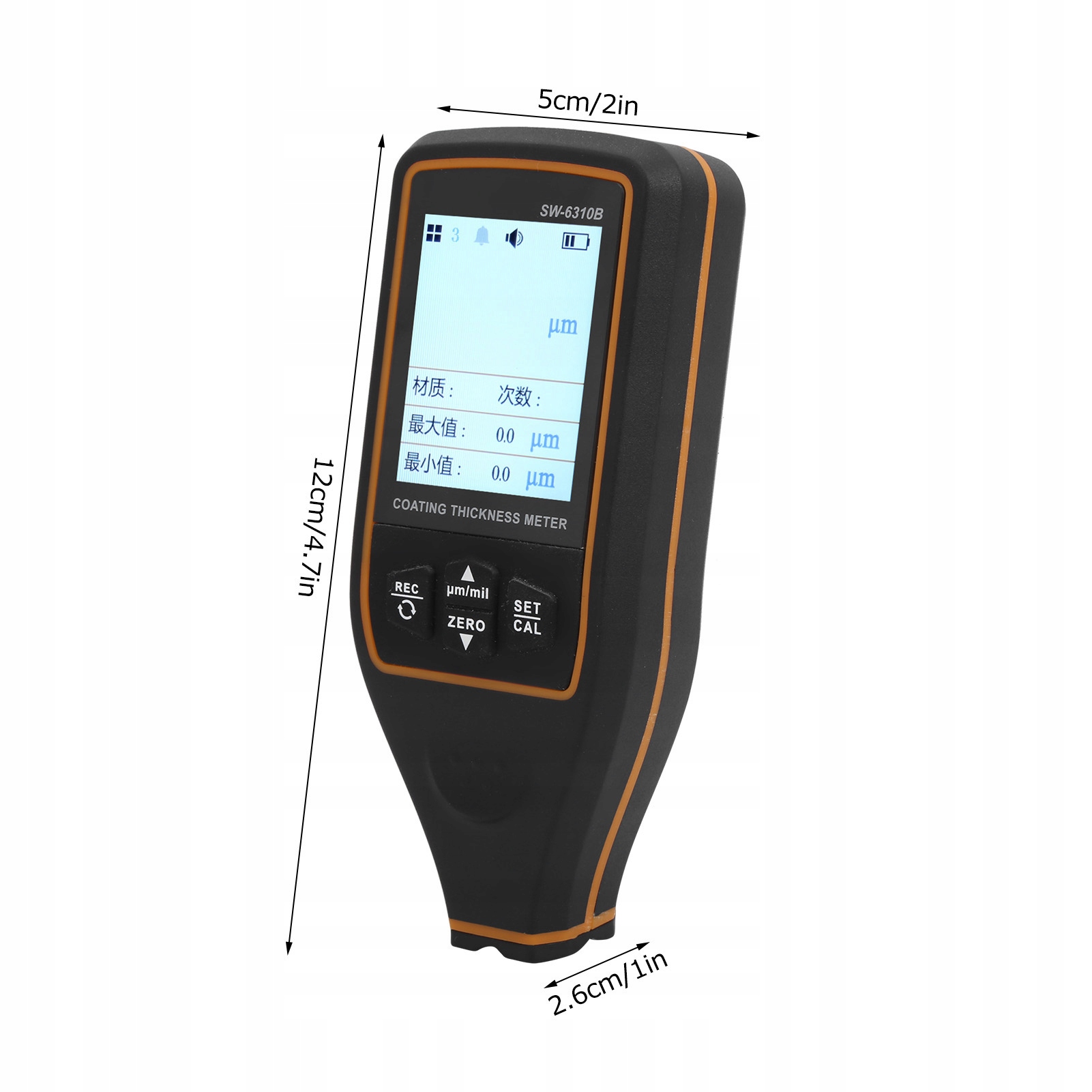 2. Измеритель толщины толщины с высокой точностью может быть свободно переключаться между китайским дисплеем и интерфейсом английского дисплея.