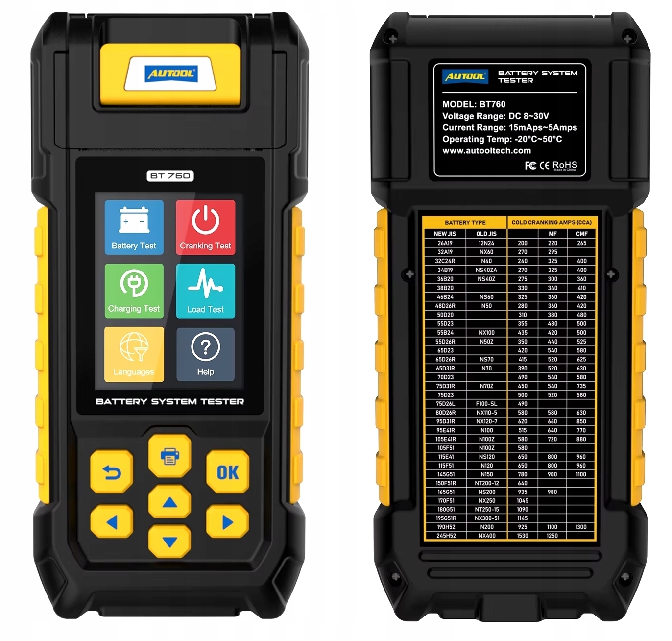 TESTER DO BATERI AKUMULATORÓW Z DRUKARKĄ 12v 24v Autool BT760 MIERNIK