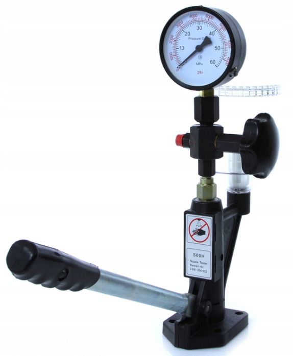 Тестер предназначен для измерения давления открытия форсунок в дизельных двигателях легковых, грузовых автомобилей и тракторов. Также проверяется герметичность и качество распыления форсунок. В комплект входят переходники (резьба М12 и М14) для крепления инжекторов и манометр до 600 бар.