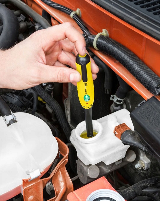 - Тестер тормозной жидкости DOT3, DOT4 и DOT5.1 (принцип светового сигнала).