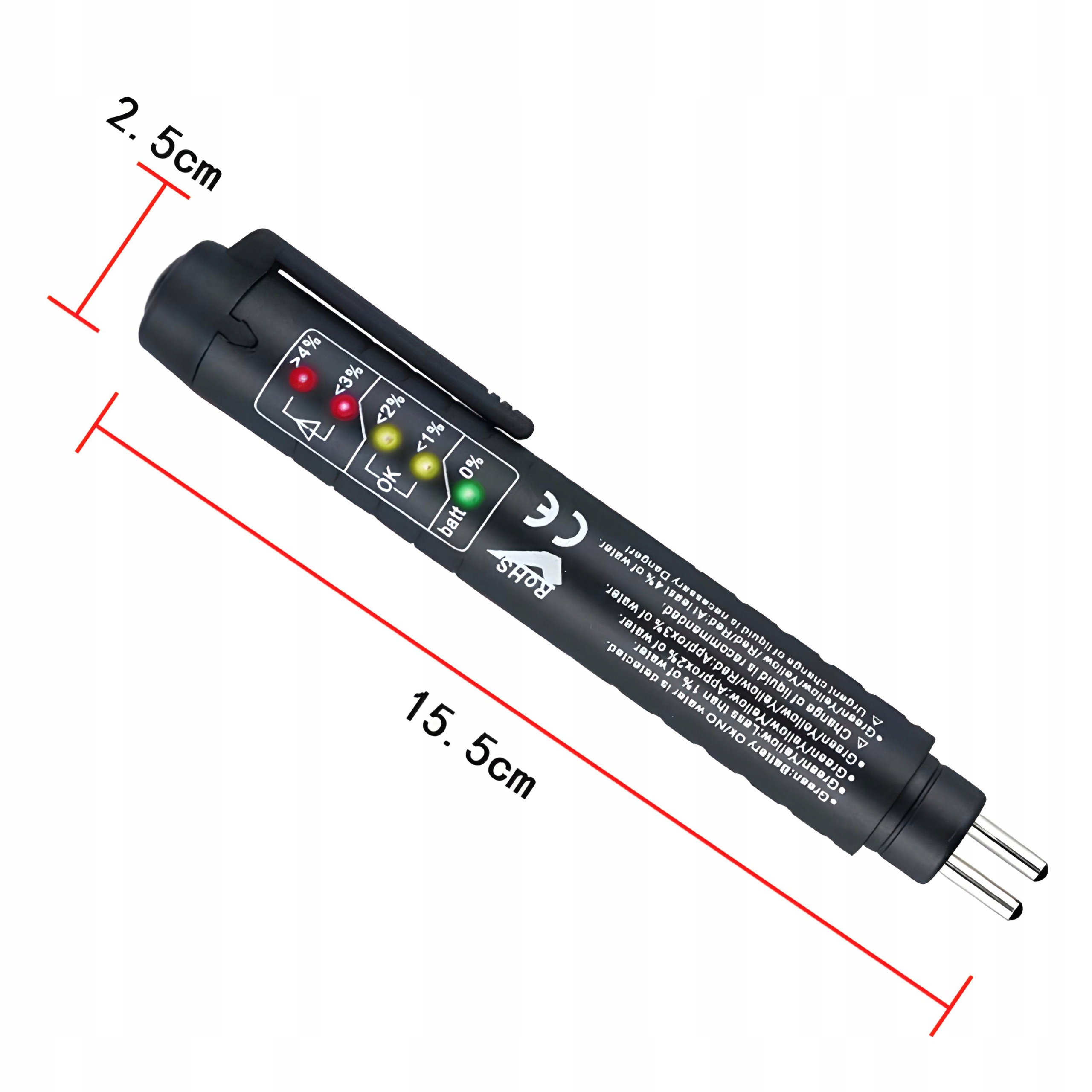 Тестер тормозной жидкости работает мгновенно и проверяет качество жидкости, выдавая готовый результат в виде цветовой маркировки светодиодов. Быстрый тест качества тормозной жидкости позволяет измерить содержание воды в тормозной жидкости, чтобы оценить безопасность вашего автомобиля. Готовое чтение не придется долго ждать. Результат появляется уже через несколько секунд после погружения ручки в жидкость. Этот экспресс и измеримый способ проверки тормозной жидкости рекомендуется каждому водителю.