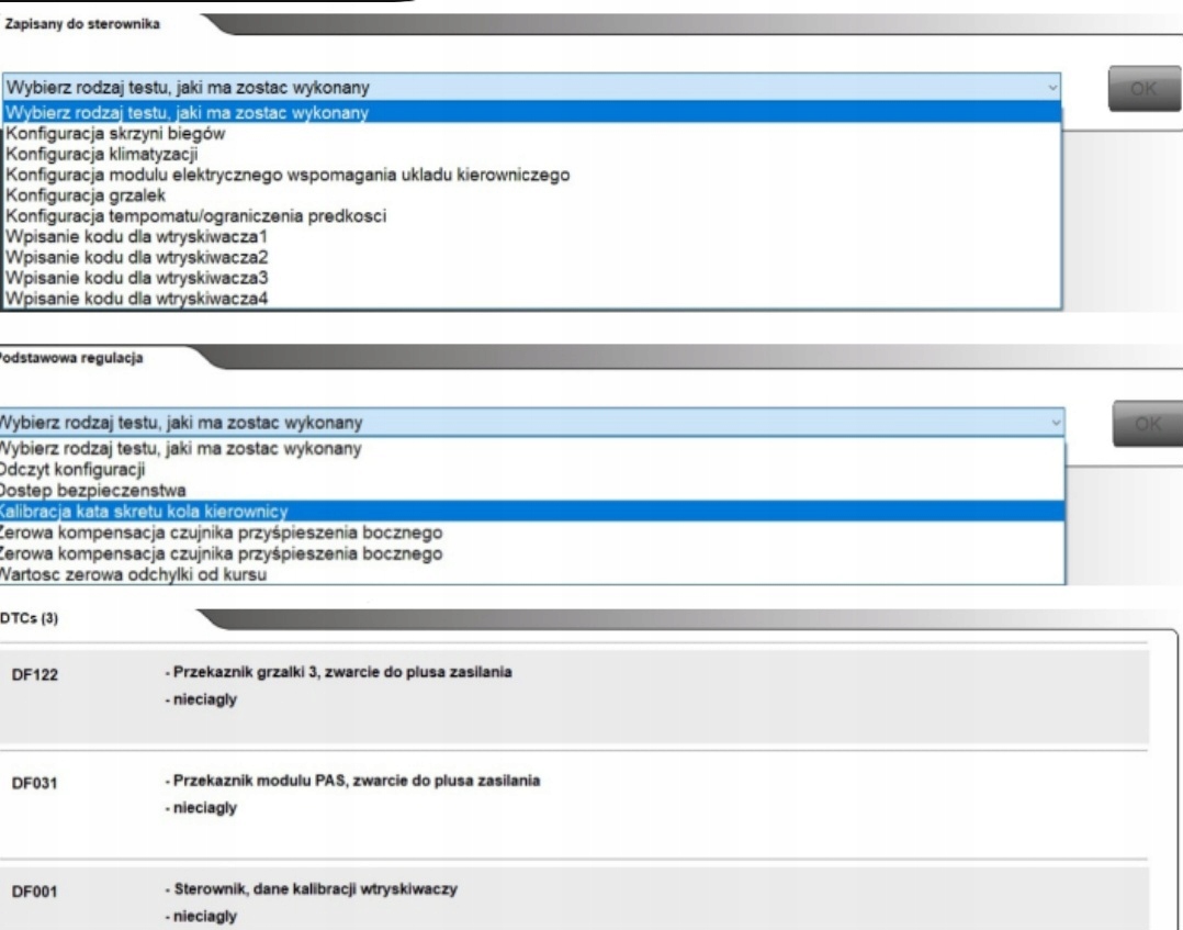 После установления связи между тестером и автомобилем работа становится очень интуитивно понятной и простой. - на польском языке (с возможностью выбора других языков).