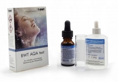 После добавления к испытуемой пробе воды двух капель раствора а (раствор окрасится в красный цвет) по каплям добавляют раствор б - одновременно их считая - до тех пор, пока цвет раствора не изменится на синий. Одна капля раствора b соответствует одному градусу немецкой жесткости (1°d).