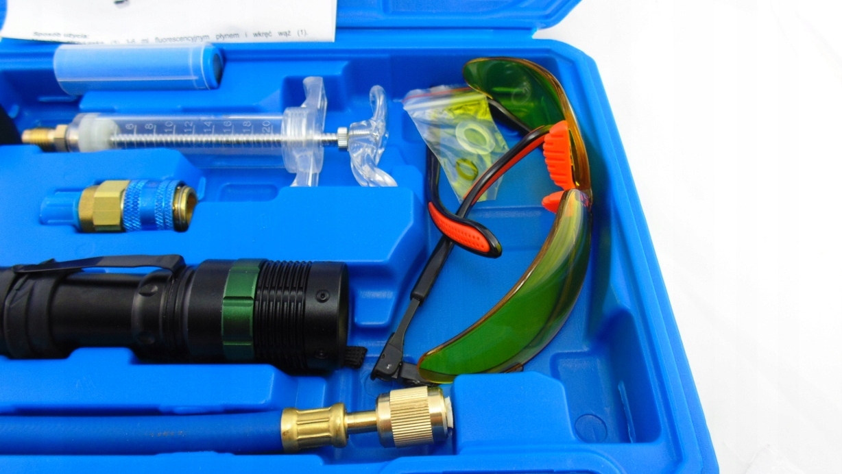 Позволяет обнаружить утечки в системах кондиционирования. , двигатели, коробки передач и т.д. (В сочетании с люминесцентными присадками)