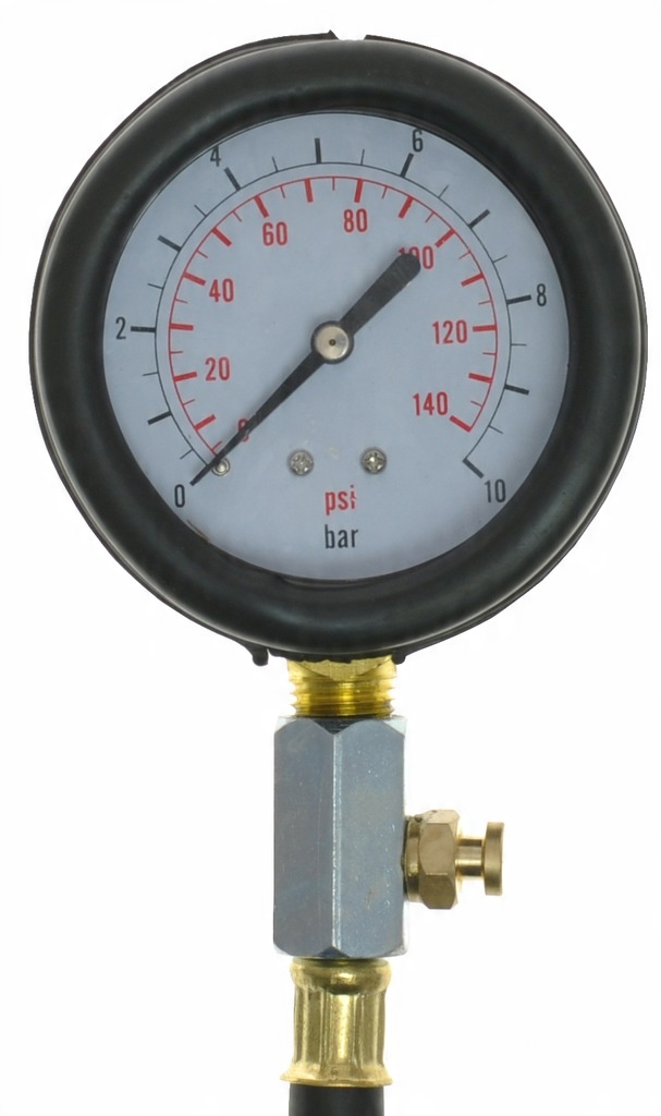 Манометр с диапазоном давления 0 - 10 бар (0–140 фунтов на квадратный дюйм) с гибким кабелепроводом длиной 1200 мм с быстроразъемным соединением.