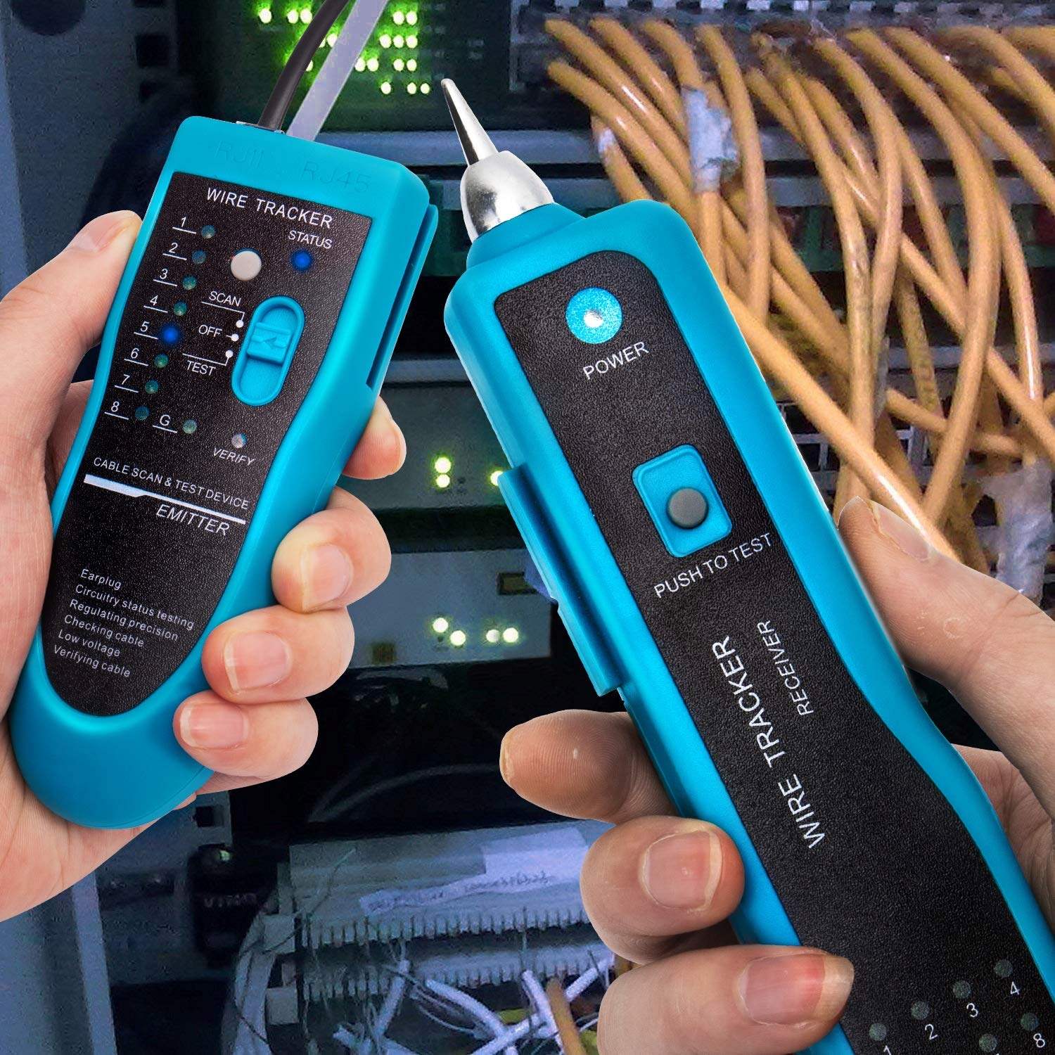 - ★【Простой в использовании и практичный дизайн】① Тестер локальной сети имеет только 2 кнопки на передатчике и 1 на приемнике, что делает его очень простым в использовании. ② Поставляется в портативной сумке на молнии с профессиональными инструментами для тестирования сети. Комплект для тестирования сетевых кабелей можно легко носить с собой и использовать в различных местах, таких как дом, офис, мастерская или другие повседневные места. ③ Внутри локатора кабеля имеется динамик, поэтому вам не нужно носить наушники, чтобы слышать.