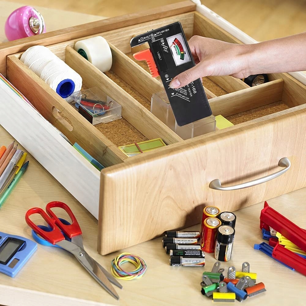 ✔️ Чтобы проверить батарею, просто переместите красный ползунок на соответствующую ширину, отрегулировав его положение в соответствии с размером проверяемой в данный момент батареи.