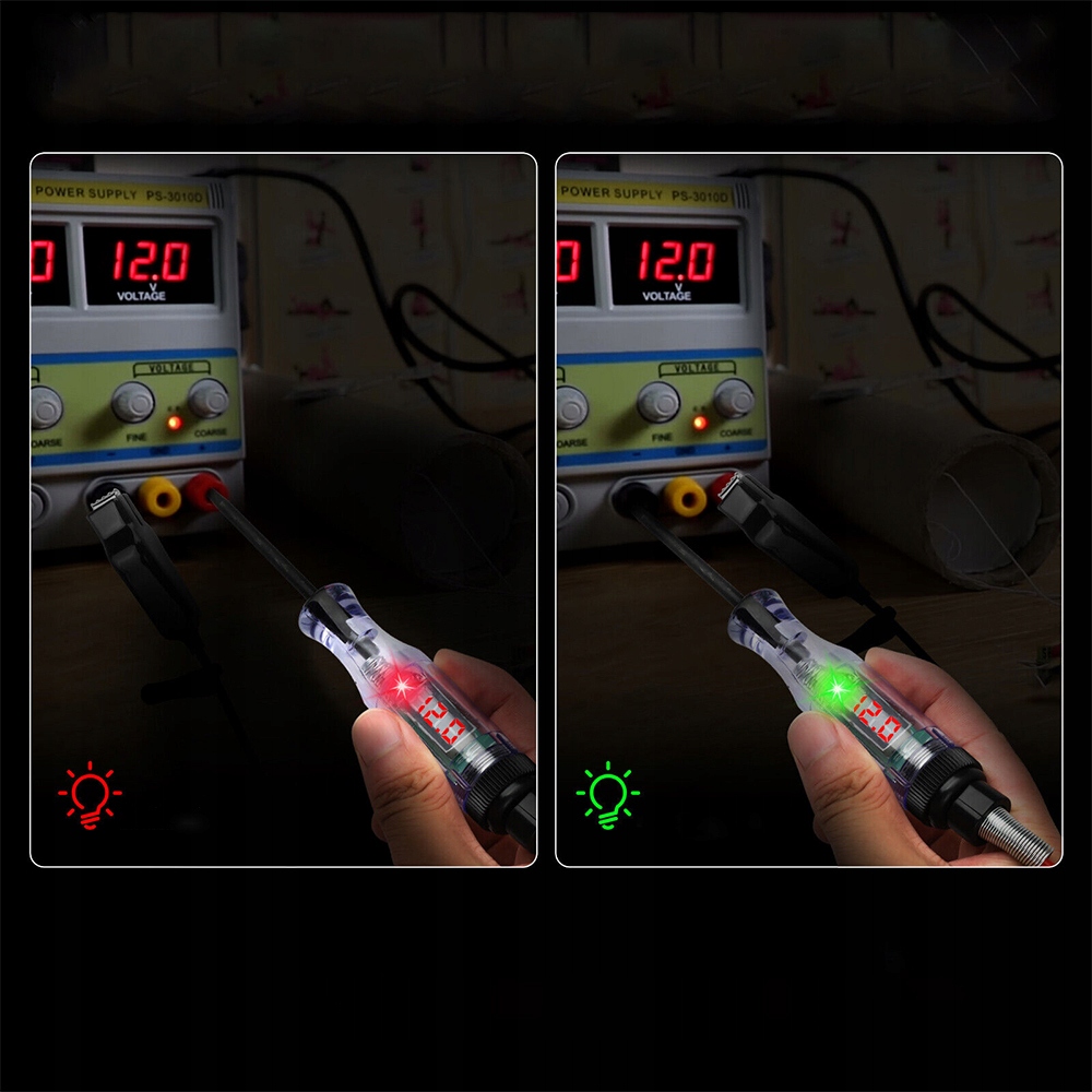 - Широкое применение: Диапазон измерения постоянного тока этого тестера напряжения составляет 3 В/6 В/12 В/24 В, что идеально подходит для использования, переноски и хранения. проверка фар автомобиля, задних фонарей, цепей указателей поворота, поврежденных розеток, соединений предохранителей и других цепей.