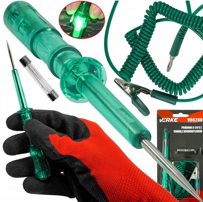 Автомобильный электротестер VERKE с диапазоном напряжения 6-24 В, со световым индикатором. Он позволяет проверять протекание тока в электроустановках мотоциклов, легковых и грузовых автомобилей. Это прекрасное дополнение к набору инструментов каждого водителя и полезное в мастерской. Бренд VERKE оправдывает ожидания профессионалов.
