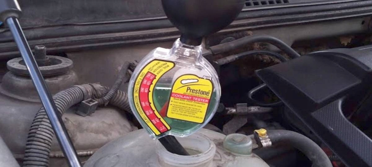 - открутите крышку охлаждающей жидкости и вставьте трубку тестера