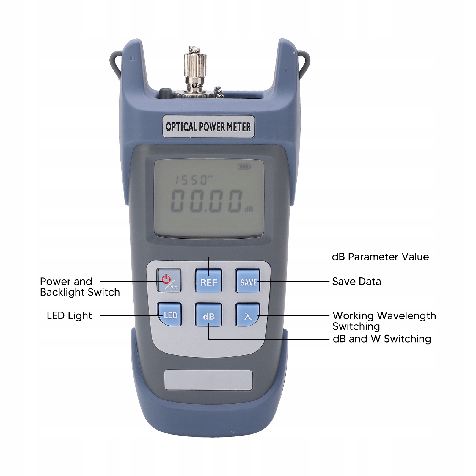 1. Лучшее тестирование: разработан, чтобы иметь широкий диапазон тестирования -50 ~+26 дБ, измеритель мощности волокна обеспечивает большую точность. Надежное использование: также имеет функцию расчета относительной мощности и калибровки, благодаря которой измерение гораздо удобнее. Длина волны: 850 нм, 980 нм, 1300 нм, 1310 нм, 1490 нм, 155 нм и 1625 нм, 7 типов волн будут отвечать вашим рабочим потребностям. Простая работа: поставляется с нежным чипом и солидной внутренней структурой, просто подключите и играйте, также обеспечивает быструю реакцию. Легкий перенос: легкий вес и компактный размер, а также легкая передача позволяет использовать как в комнатах, так и снаружи. Тестер оптический волокно измеритель