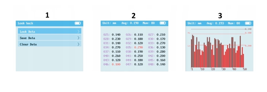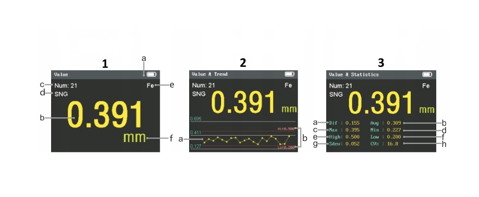 ЭКРАНЫ: 1, 2, 3 — измеренное значение и предварительный просмотр предыдущих измерений:
