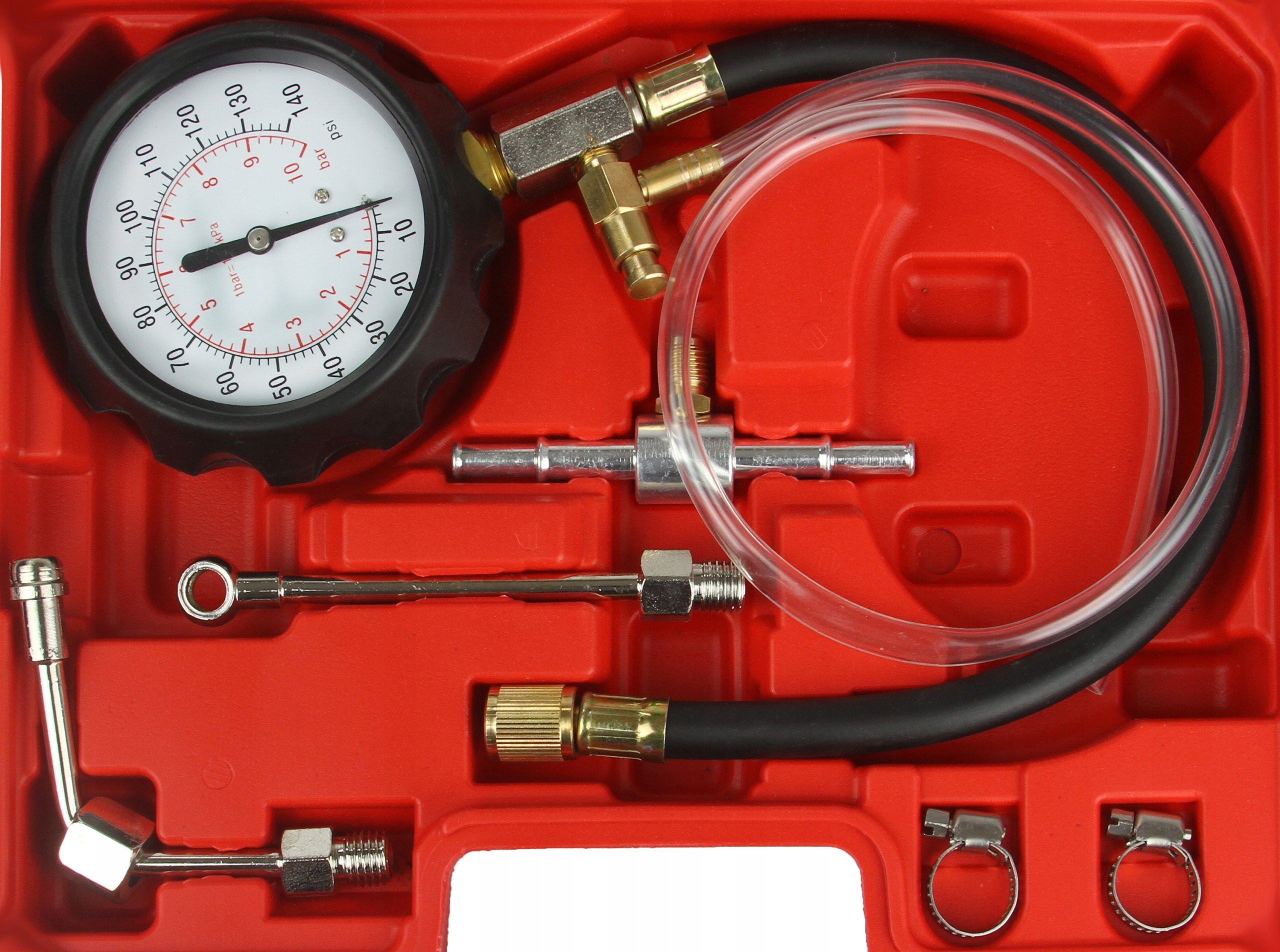 В комплект входят переходники и фитинги, подходящие для большинства систем впрыска топлива. Манометр с двойной шкалой: 0–140 фунтов на квадратный дюйм и 0–10 бар.