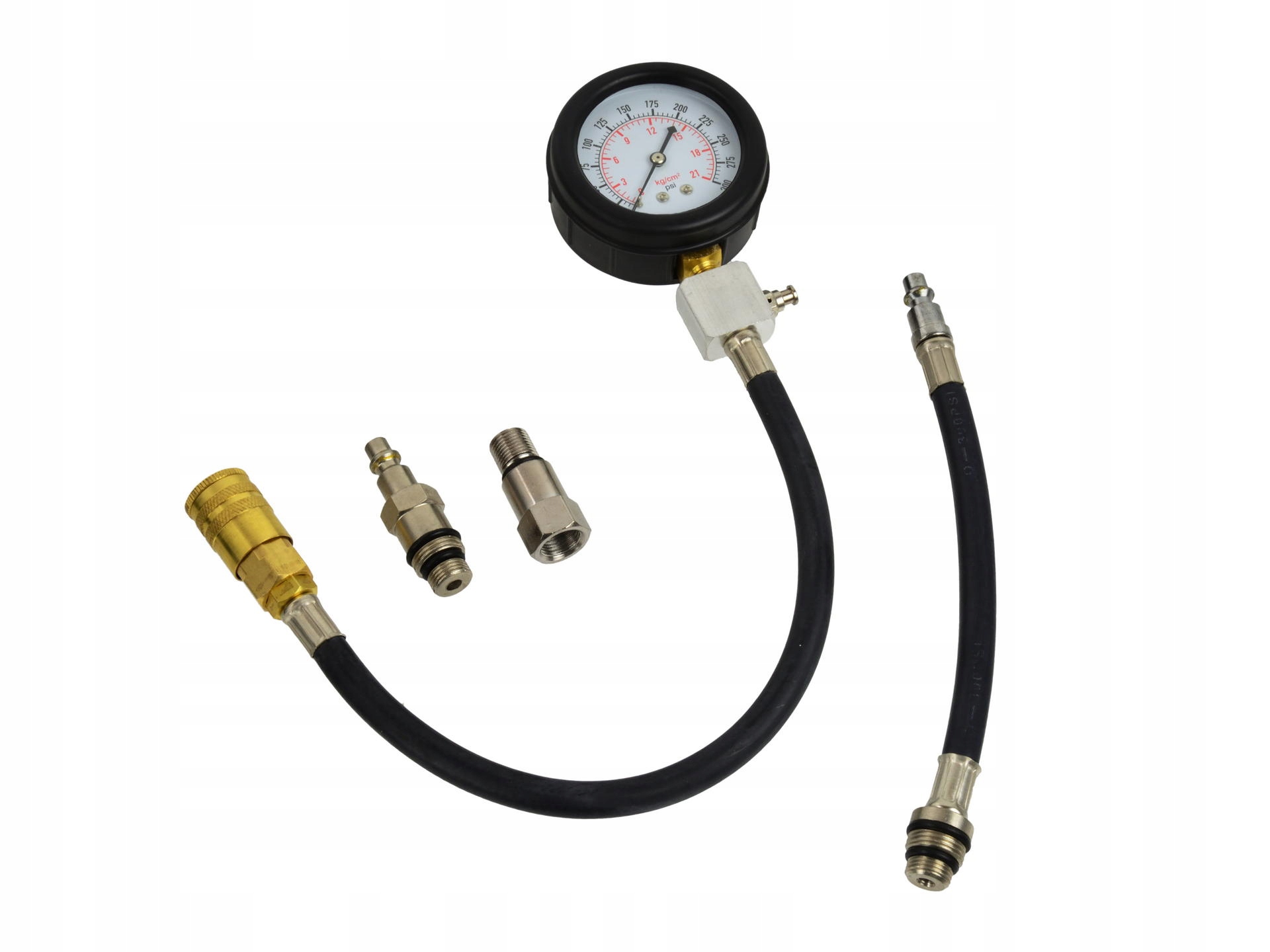 «В пластиковом чемодане есть датчик давления с клапаном, расширяющий шланг давления и 4 адаптера для подключения к цилиндрам. Части оснащены быстрыми муфтами для легкой и быстрой установки.