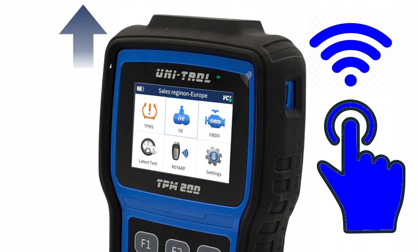 Тестер Uni-Trol TPM 200 — универсальное устройство для работы датчиков TPMS. Он оснащен антенной для возбуждения и считывания информации с заводских датчиков. Позволяет программировать универсальные датчики Uni-Trol VS21. Для связи с блоком управления TPMS автомобиля через разъем OBD используется модуль Uni-Link, который осуществляет беспроводную связь с устройством через Bluetooth. Чтобы клиентам было проще проводить бесплатное обновление, тестер TPM 200 оснащен модулем Wi-Fi, благодаря которому после подключения к сети мастерской обновляем устройство одним кликом.