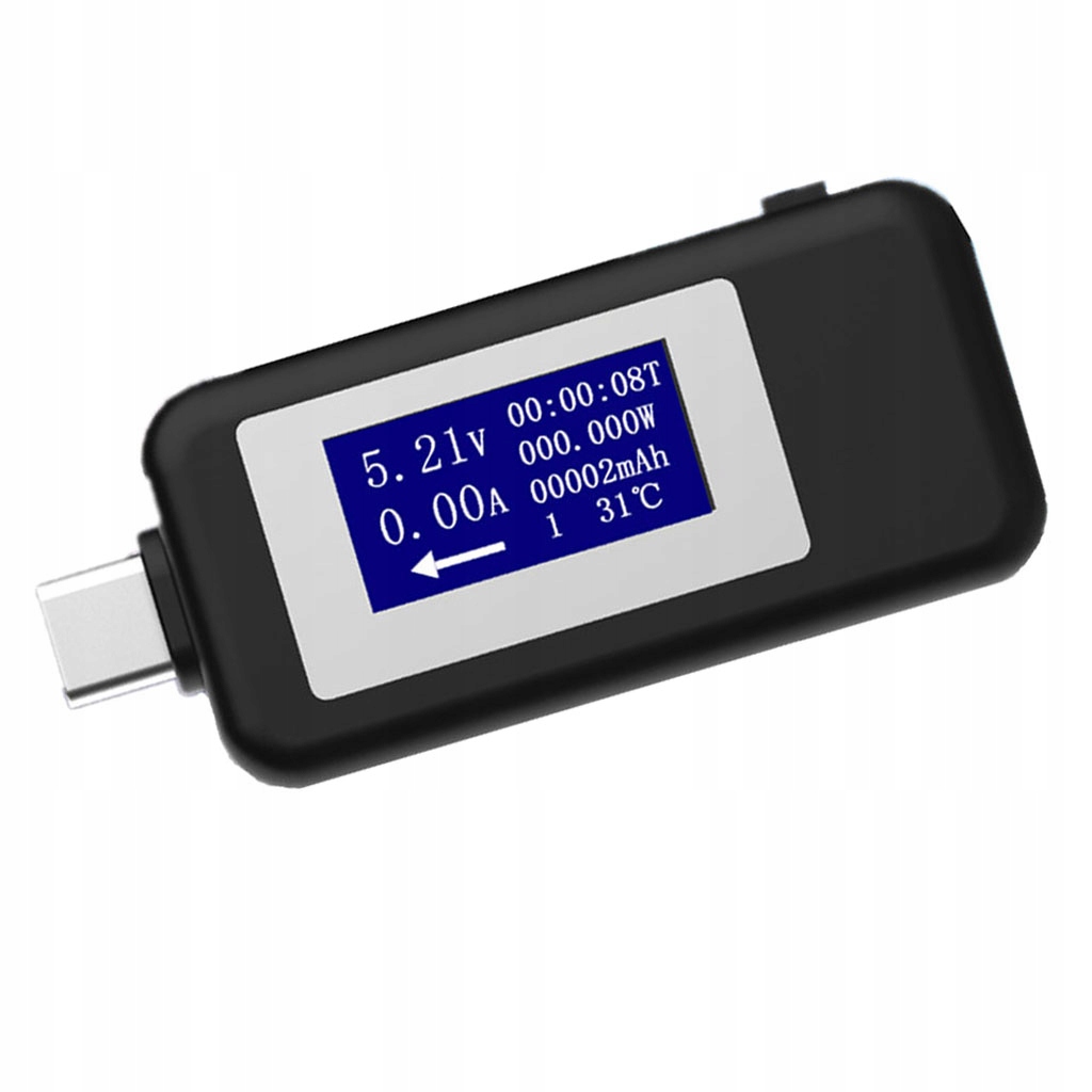 Tester USB DC Cyfrowy Woltomierz USB C Miernik Napięcia Prądu Czarny