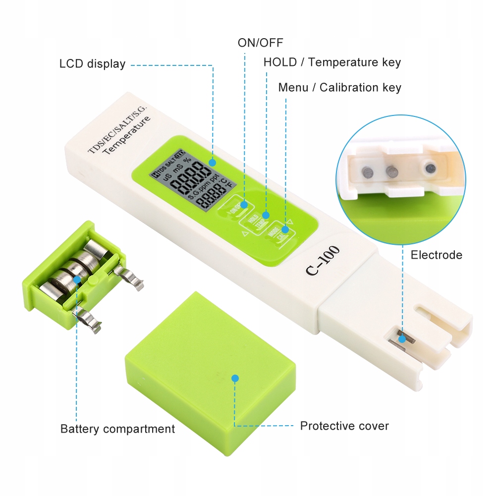 Тестер качества воды C-100 Дезинтеграционный счетчик/TDS/EC/5W1