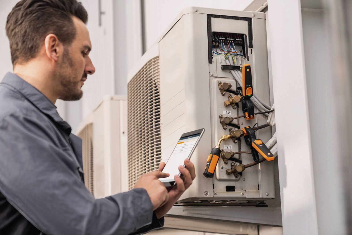 Профессиональный и компактный датчик давления хладагента testo 549i, совместимый с мобильным приложением Testo Smart Probes App через смартфон или планшет. Данное решение полезно при повседневных сервисных работах, при решении проблем, возникающих в холодильных установках, а также при монтаже и пуско-наладке систем. Приложение также позволяет автоматически рассчитывать температуры испарения и конденсации.