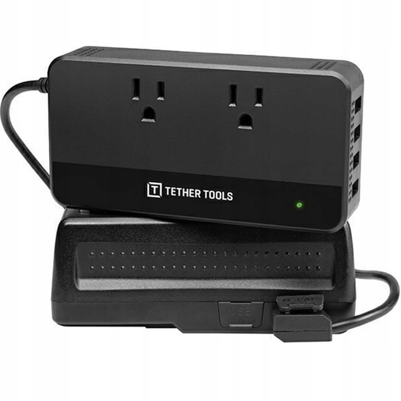 Tether Tools ONsite D-Tap to AC Power Supply — это портативный источник питания переменного тока. После подключения аккумулятора с помощью разъема D-Tap (совместимого с разъемами V-Mount и Gold Mount) он позволяет питать такие устройства, как ноутбуки, зарядные устройства, планшеты и тому подобное, в полевых условиях. Он имеет две розетки переменного тока и 4 порта USB, что позволяет одновременно питать несколько устройств.