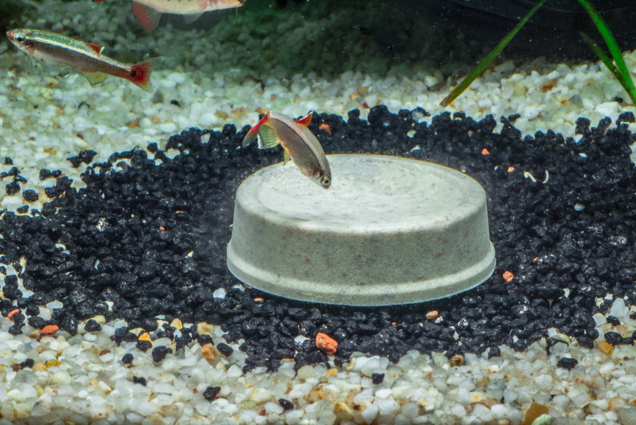 - Снимите упаковку свежести и бросьте блок из лотка в аквариум.