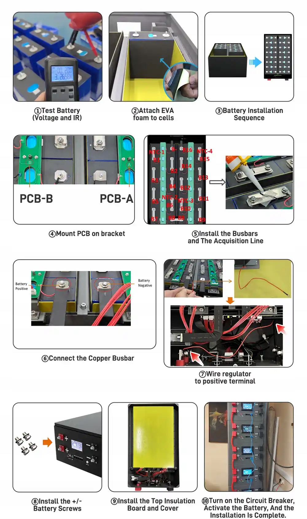 【Удобство для самостоятельной сборки и предварительная сборка】 Предварительно установленные BMS, жгуты проводов и клеммные колодки, что очень подходит для пользователей, которые любят DIY; Набор нельзя использовать при чрезмерно набухших клетках. Мы рекомендуем использовать элементы Tewaycell.
