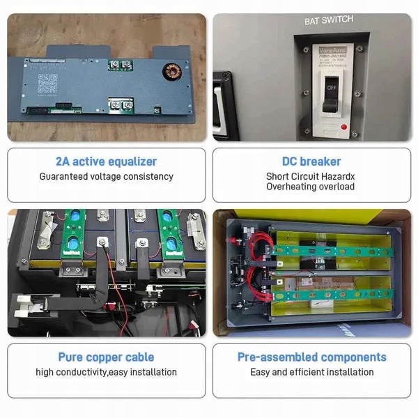 【Особенность】С воздушным выключателем (выключателем постоянного тока); Встроенный Smart JK 16S 200A BMS с Bluetooth, экраном и активной балансировкой 2 А