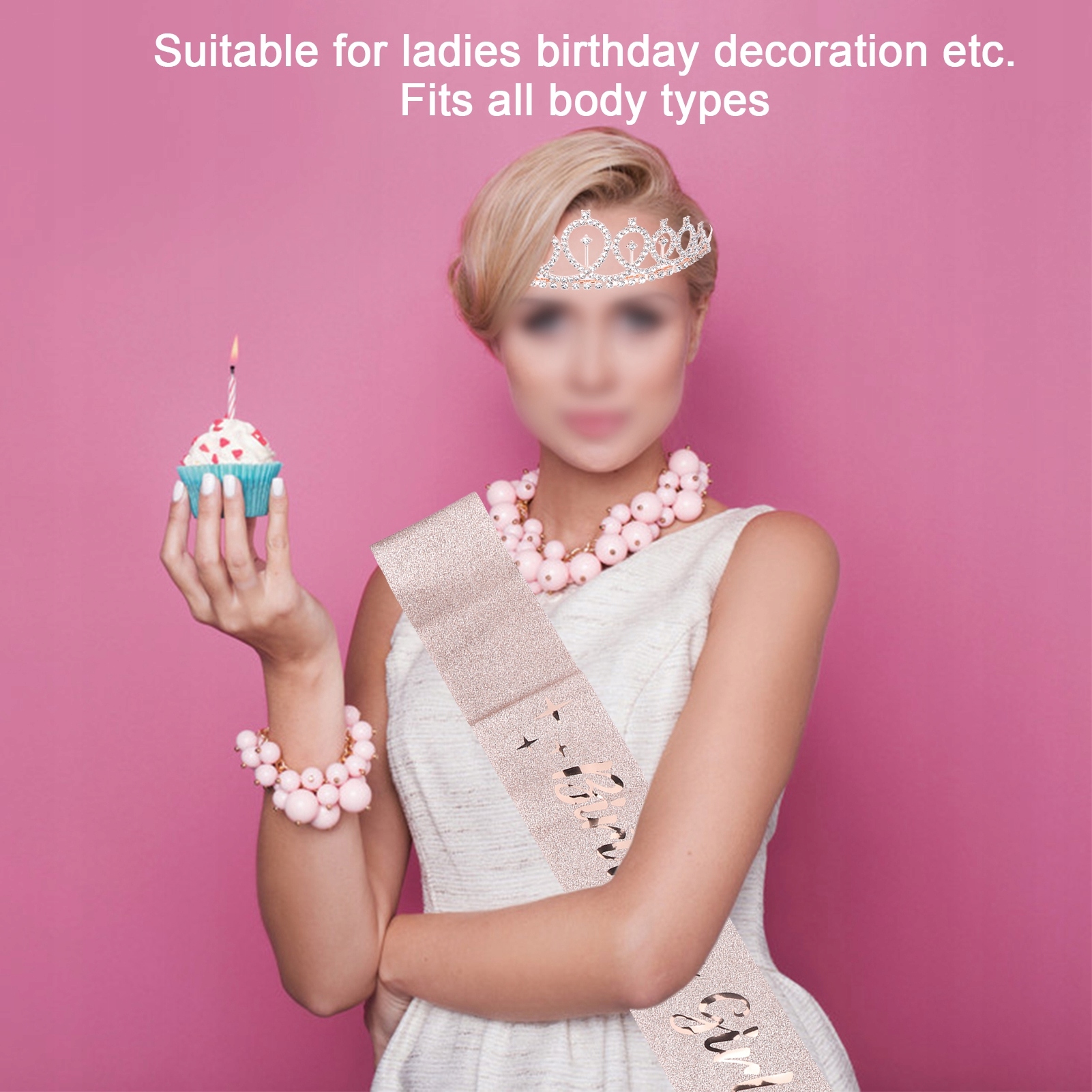 4. Сверкающее: подарочный набор «ДЕНЬ РОЖДЕНИЯ» с поясом и тиарой со стразами. Ремешок с золотыми блестками и буквы из розового золота отлично смотрятся на фотографиях.