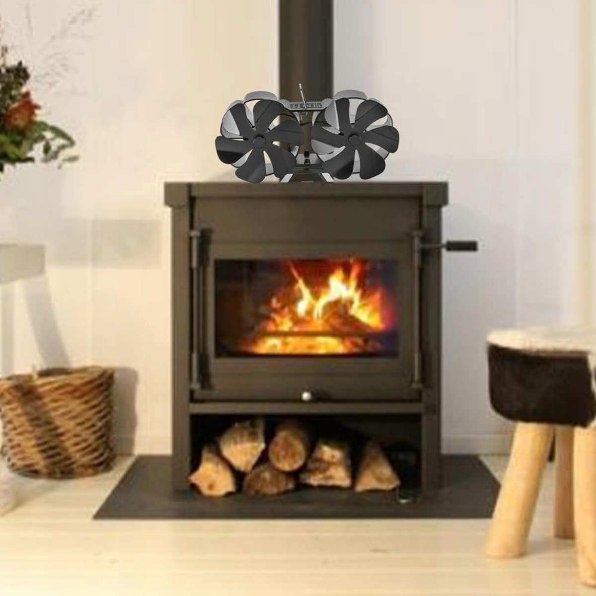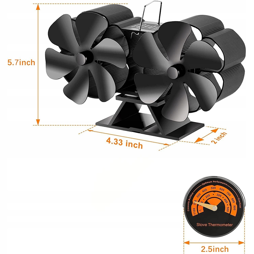- Благодаря 12 лопастям и двойному двигателю вентилятор камина для вашей дровяной печи может равномерно распределять теплый воздух по комнате, сохраняя тепло.
