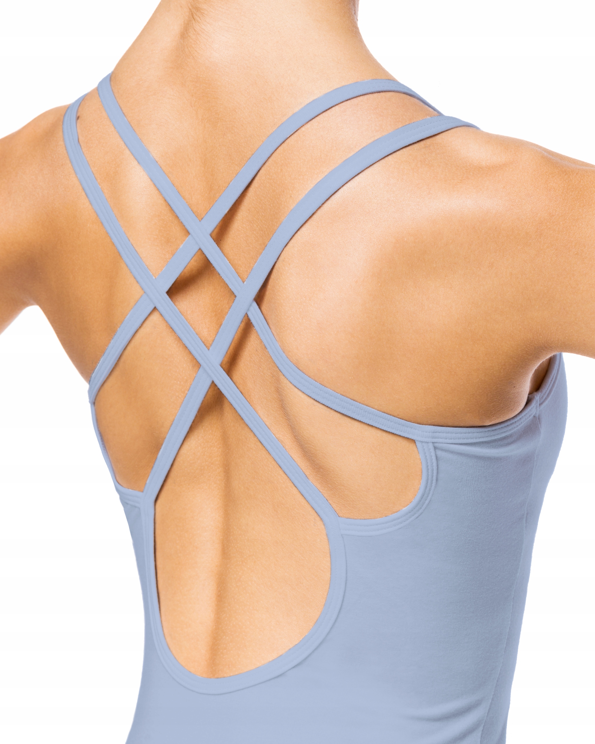 Комфортное боди со скрещенными бретелями на спине, что придает эффектный вид. Костюм идеально подходит для занятий балетом,гимнастикой и йогой.