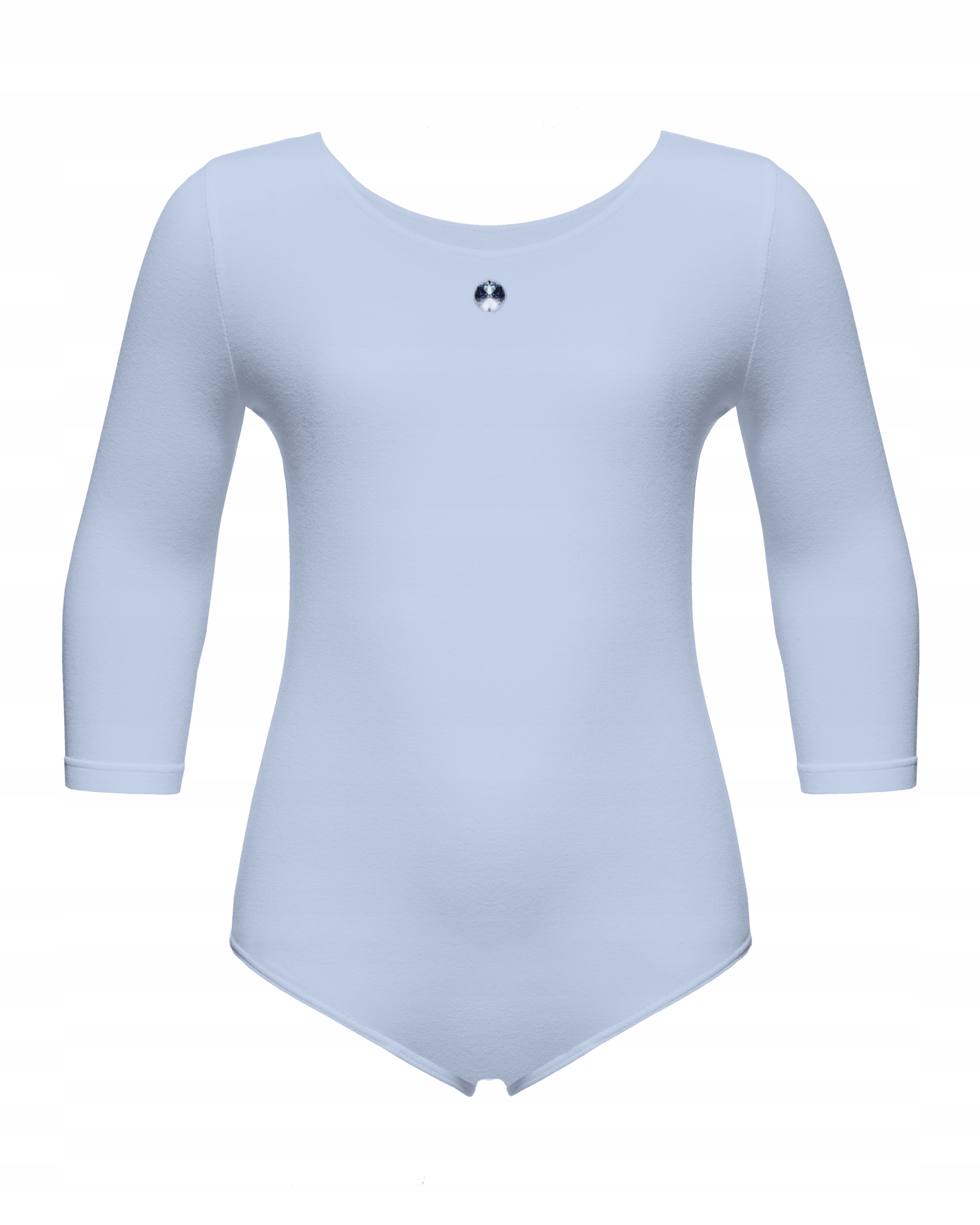 Посередине выреза горловины пришит мерцающий камень, благодаря которому боди будет отлично смотреться во время выступлений.