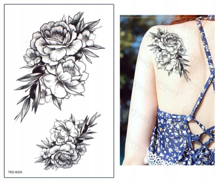 ТИМЧАСОВЕ ТАТУ РОЗИ КВІТИ КВІТИ 2 НА АРКУШІ